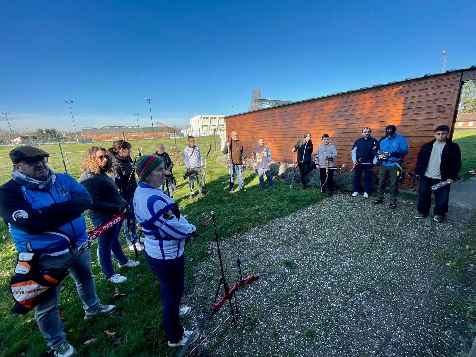 Un très grand nombre de participants était présent, des habitués, mais également des débutants. Après un discours de notre 1er Lieutenant et une minute de silence, nous avons défilé dans le jeu d'arc et salué les buttes. Ensuite deux équipes ont été tirées au sort pour disputer une rognette. D'un côté celle du premier empereur Édouard, accompagné de Marine, Catherine, Laure, Charles, Antonio, Wilfrid, Youssef, Gilbert, Saïd et Nathan. De l'autre côté, celle du second empereur Raphaël, accompagné de Samia, Virginie, Denis, Didier, Frédéric, Stéphane, Ahmed, Sébastien et Antoine. 21 tireurs, soit presque le tiers des effectifs.