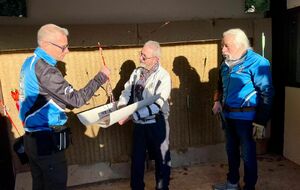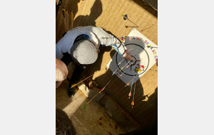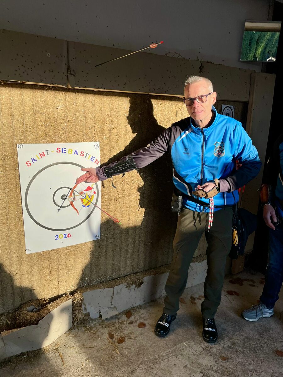 Après cette partie de jardin a eu lieu le tir sur la carte décorée par le Sébastien précédent, Ahmed. Après moultes analyse des impacts, la meilleure flèche est attribuée à Wilfrid, qui devient Sébastien 2026. Il repart avec un verre gravé.